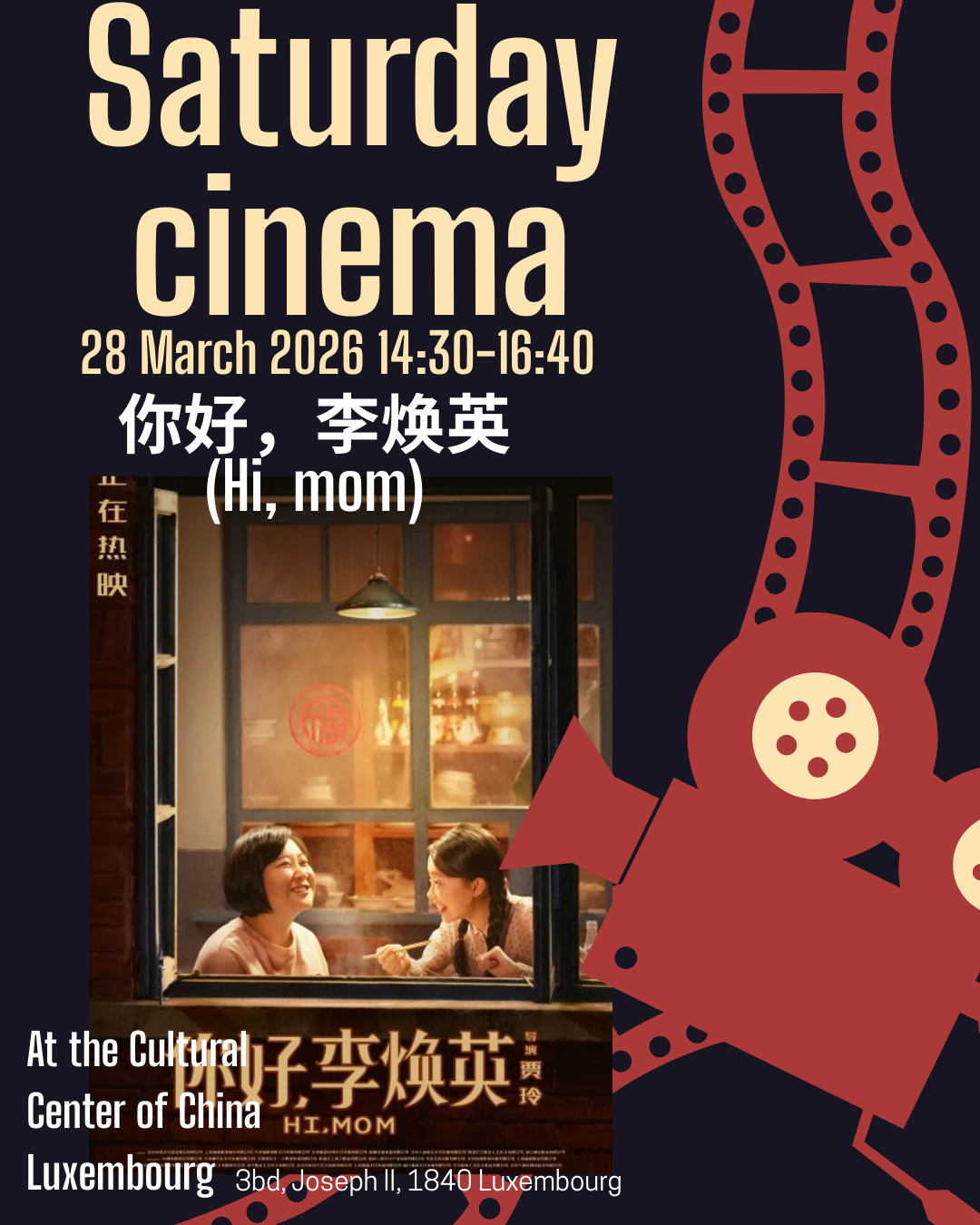 从3月28日起,每个周六下午,我们都将在中心为您播放精选中国电影。 阅读之余,欢迎走进中心影院,在光影中感受中国故事。Starting March 28, we are thrilled to launch our Weekly Saturday Cinema. Join us every Saturday afternoon to enjoy a curated selection of Chinese films.